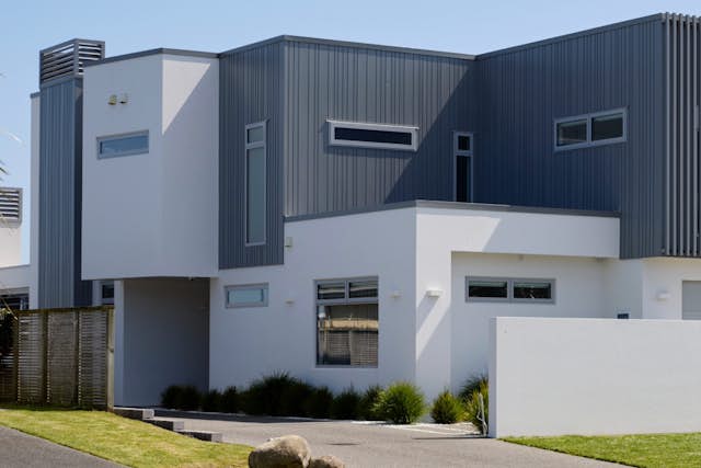 The Haven makes an instant impression with its bold architectural cladding, featuring Resene Construction’s off-form concrete effect and distinctive MultiStop ‘planking’ texture that adds depth, character, and a uniquely elevated finish.