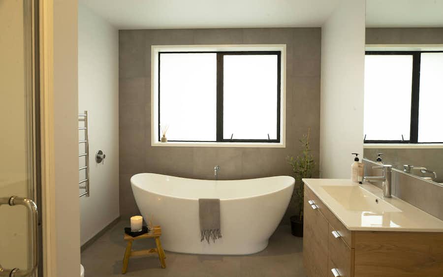 Clarissa & Marco wanted the bathroom in their new home to wow their guests. As high traffic areas, they splurged on extra tiling, a built-in shower and a feature bath, which all elevate the space.