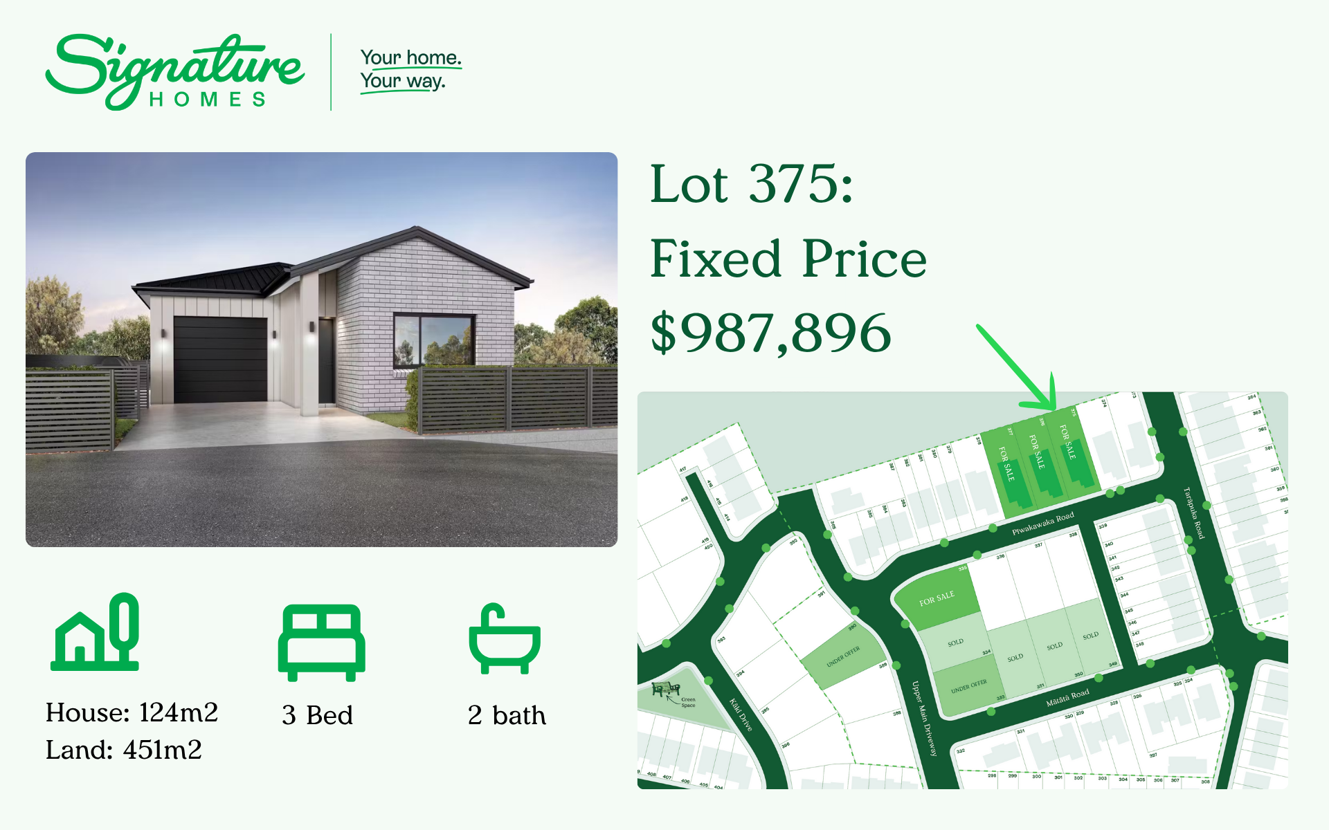 With a Signature Homes House & Land package, your path to a brand-new home couldn’t be easier. Every design is crafted to suit its site, priced with full transparency, and backed by New Zealand’s best building guarantees.