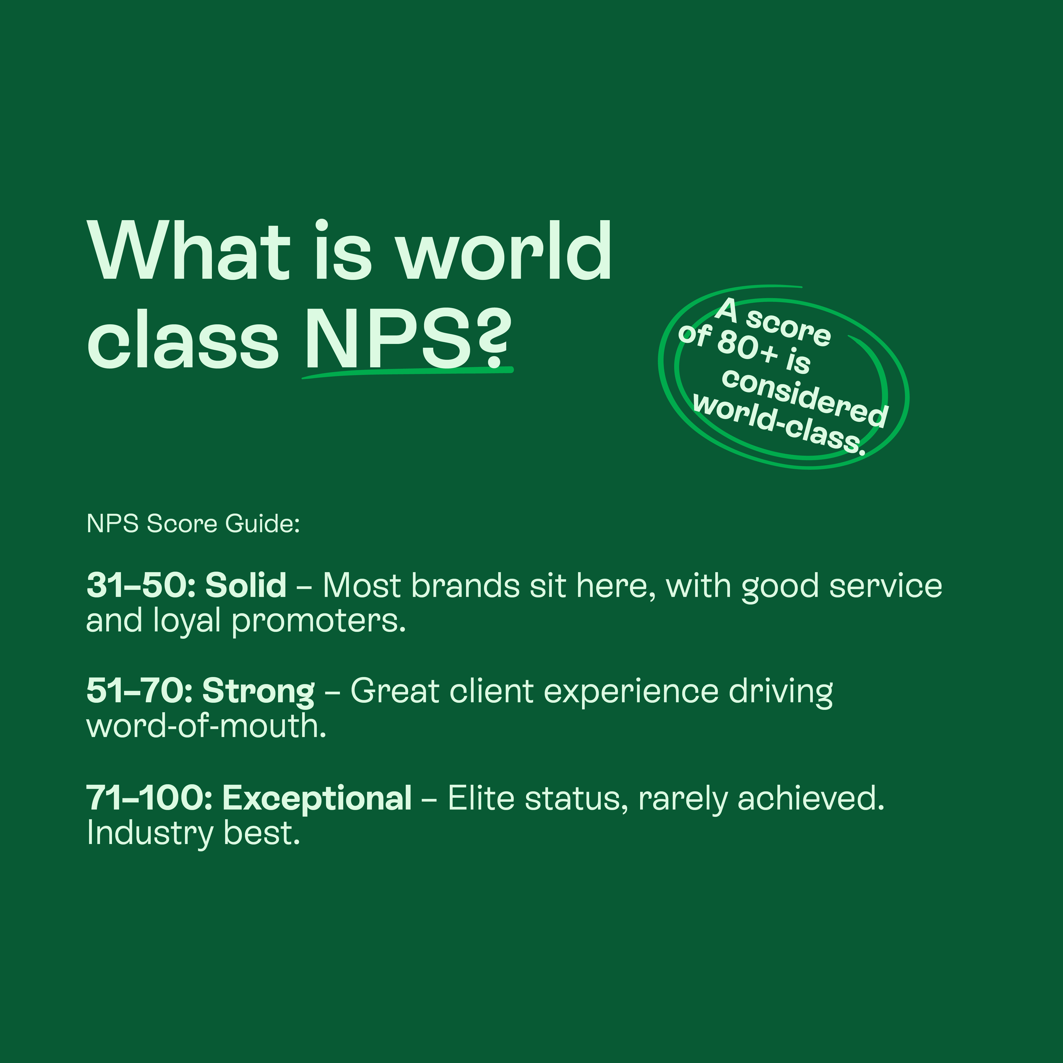 Across all industries globally, the average NPS typically falls within this range. Anything above 40 is considered strong.