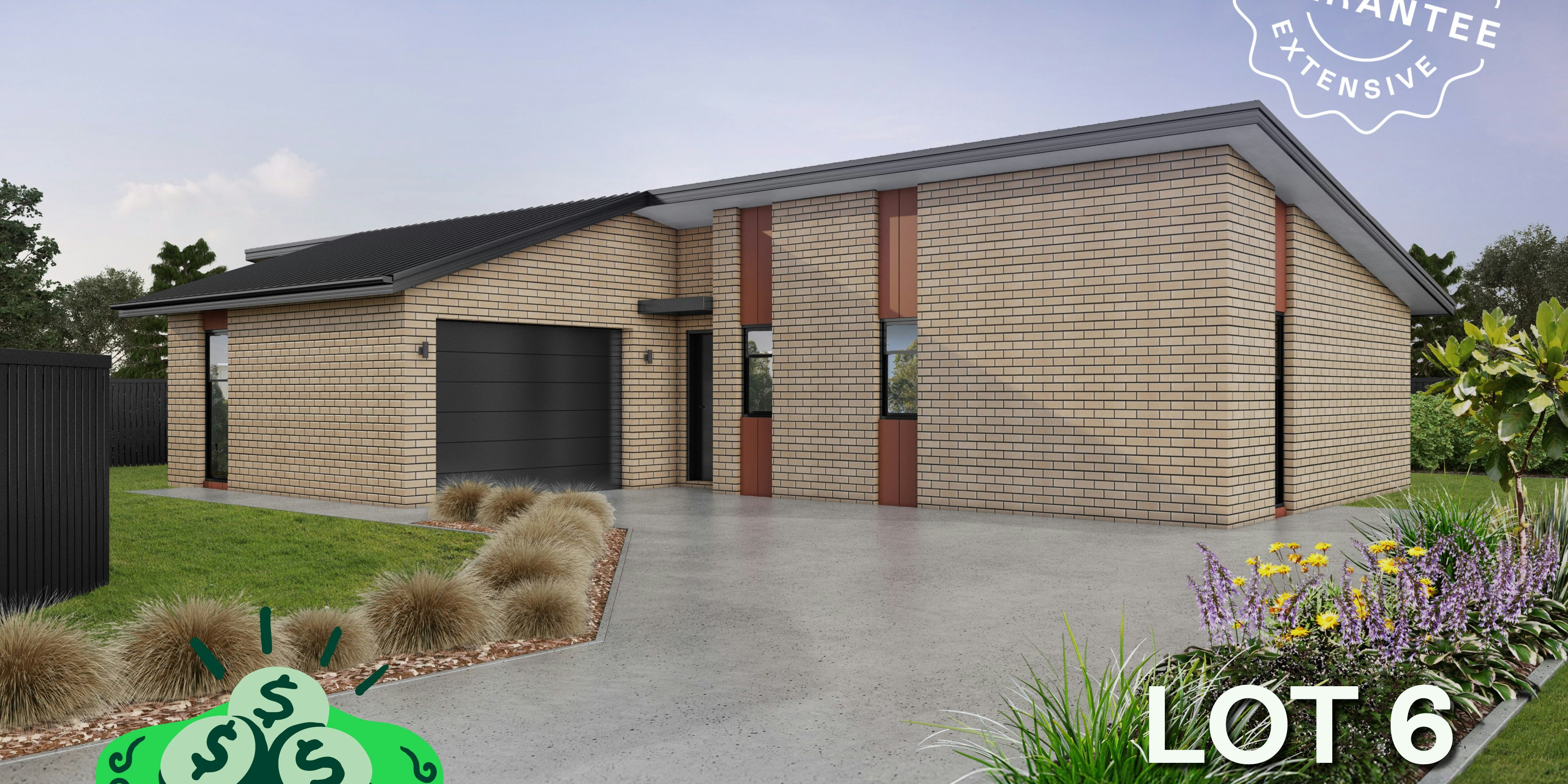 Lot 6 is for those who want space to truly settle in. A 472m² section paired with a 144m² home that makes every square metre count. Three bedrooms, two bathrooms, open-plan living, and a single garage. Everything you need, with plenty of room left over to make the outdoors your own.