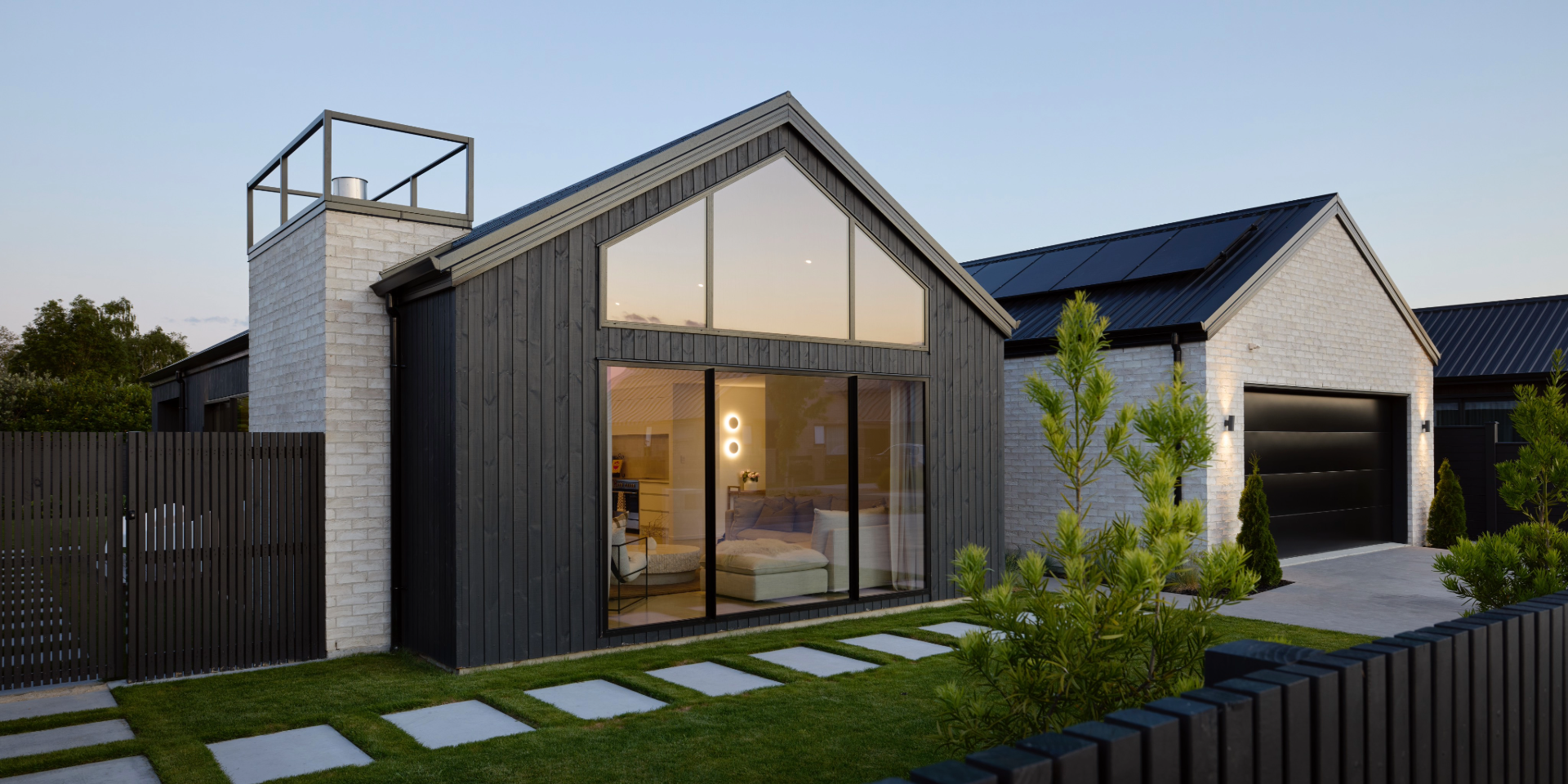 Framed by a striking gabled roofline, this home is filled with natural light through expansive windows, perfectly positioned to maximise sun and outlook. Inside, the open-plan kitchen is both practical and refined, featuring crisp white cabinetry, a wood-panelled island, and soft pendant lighting, an inviting hub for family living and entertaining.