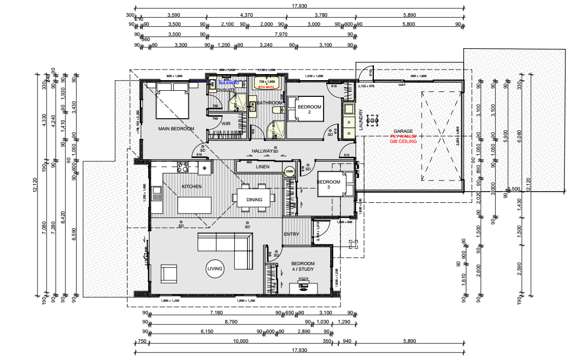 Be assured of comfortable living with the Wai build. The design showcases an effective use of space, with three thoughtfully positioned double bedrooms, a study, an open-plan living area and a double garage for storage.