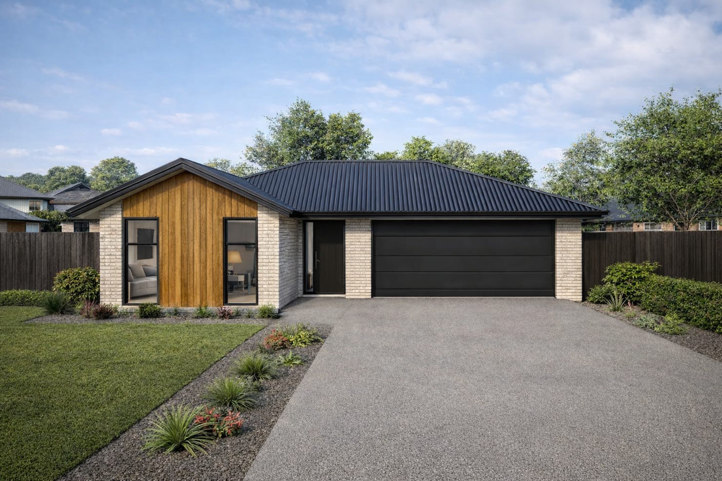 This house and land package in Hampton Grove, Prebbleton is a practical option for families needing space without a large section to manage. The 165m² home includes four bedrooms, an additional living area, and an open-plan kitchen and dining space, providing clear separation between family living, quiet areas, and entertaining. The layout is well suited to day-to-day family life as needs change over time.