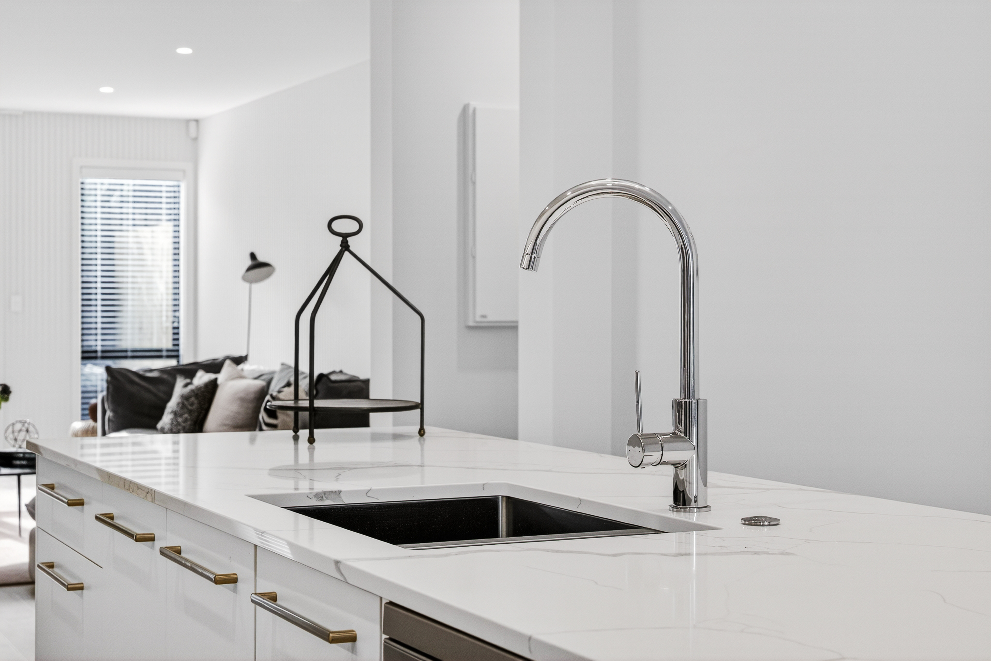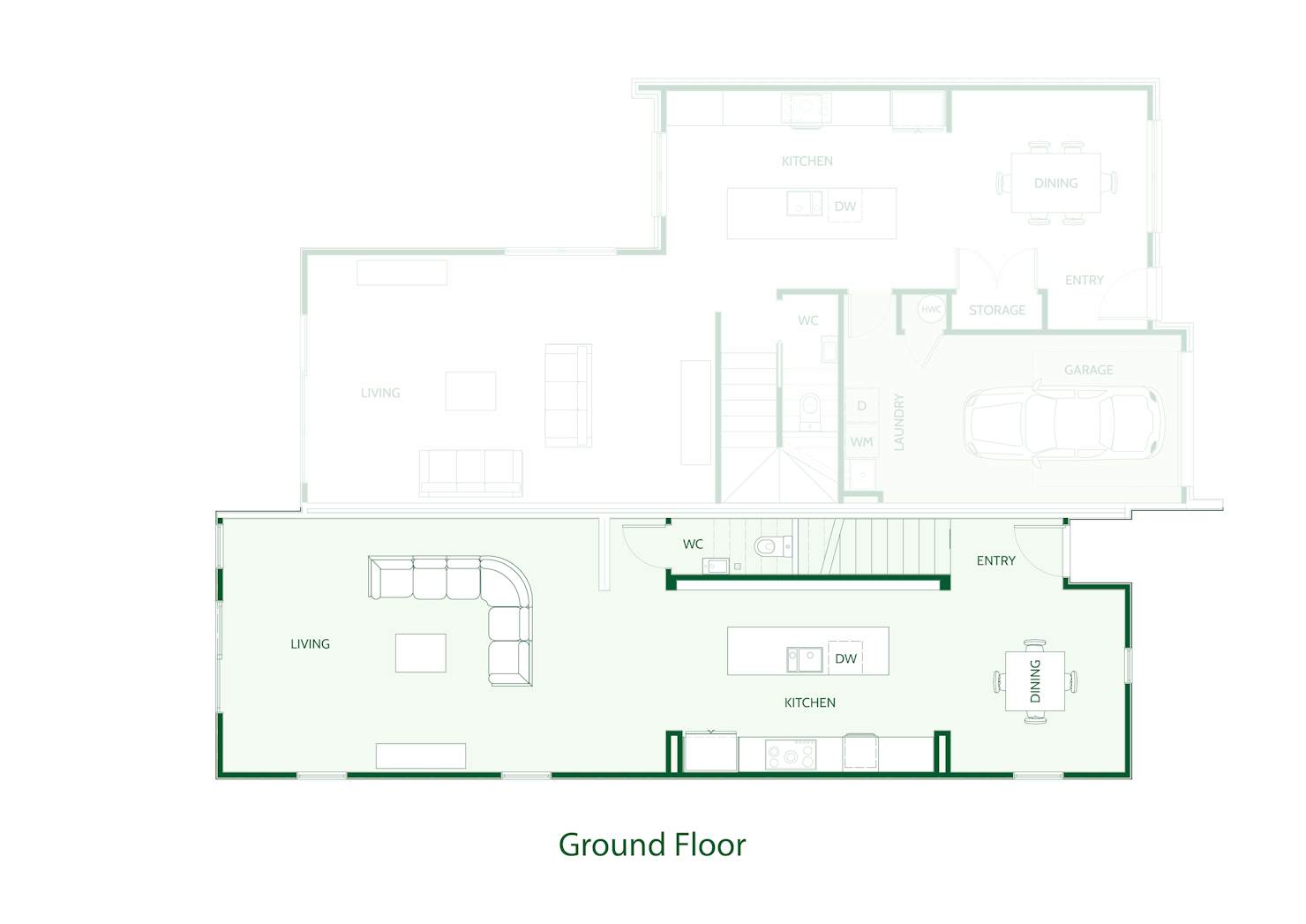 - Open plan kitchen, dining, and living area