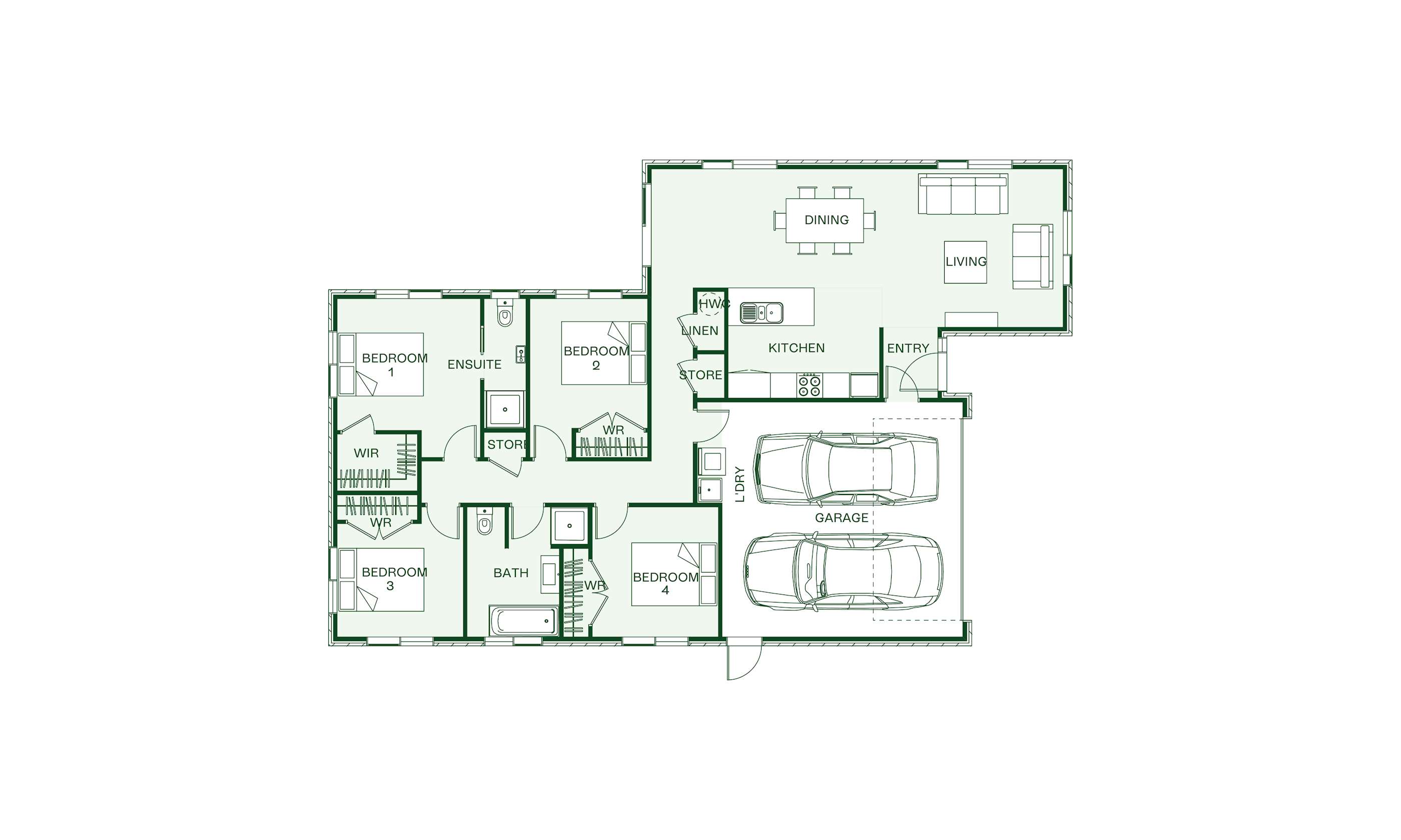 The Kakapo 160m2 Plan offers low-maintenance living without sacrificing essential features. This thoughtful floorplan packs a lot in the space, with 4 bedrooms and two bathrooms, perfect for families or as an investment property. The master ensuite is thoughtfully separated from the other bedrooms for added privacy, while the open-plan layout maximises living space. Located on a 400m2 section, this is the perfect mix of privacy and low maintenance.