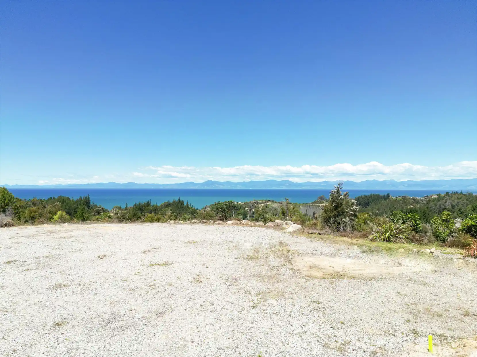 This 9,404m² section sits gently above it all, capturing sweeping, uninterrupted views across Tasman Bay on one side and majestic mountains on the other, creating a rare sense of calm and space. Accessed via a shared gravel driveway, it opens onto a generous, flat building platform ready for your dream home.