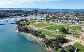 Hobbs Bay Estate is a premium waterfront subdivision by the renowned Hopper Developments. It features spacious residential lots, stunning sea views across the harbour to Auckland CBD, wide roads, and convenient boat and walkway access to Hobbs Bay Beach.