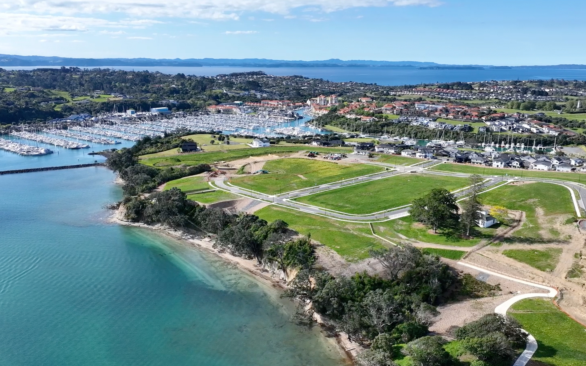 Hobbs Bay Estate is a premium waterfront subdivision by the renowned Hopper Developments. It features spacious residential lots, stunning sea views across the harbour to Auckland CBD, wide roads, and convenient boat and walkway access to Hobbs Bay Beach.