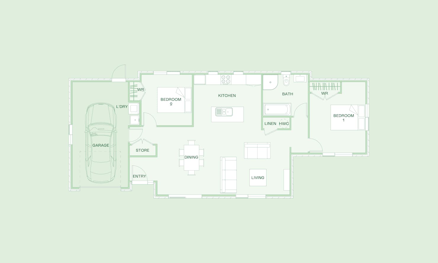 Good things come in small packages, and the Tui does not disappoint. This plan features two spacious double bedrooms, an open-plan kitchen, living and dining area and a single internal access garage, all in 116m2. This home, with its simple design, offers outstanding value without sacrificing quality.