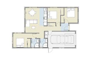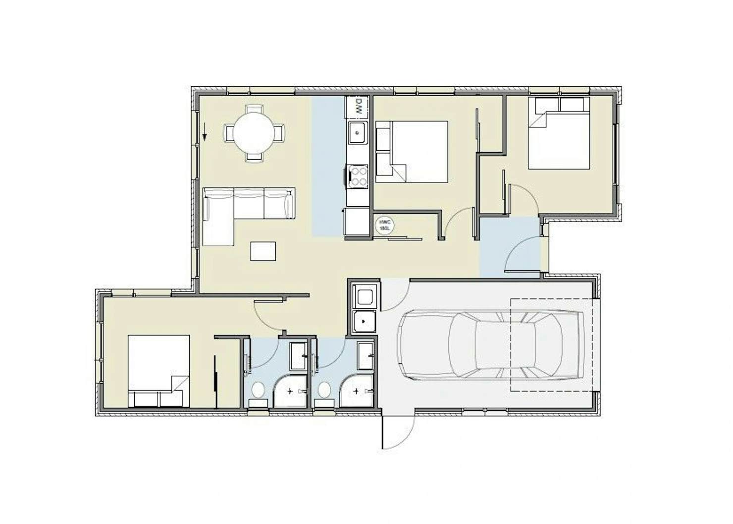 The three bedroom plan makes great use of space at every turn. Open plan living helps to create more space throughout the home. Great first home or investment property!