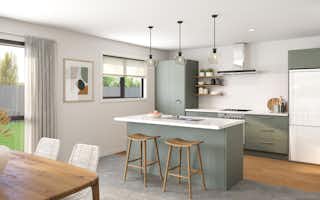 The Kiwi plan makes for an ideal family home with three generous bedrooms, open plan living and double car garaging. Daylight shines through to the modern kitchen thanks to ample windows - add some flair to your home with a glass window splashback.