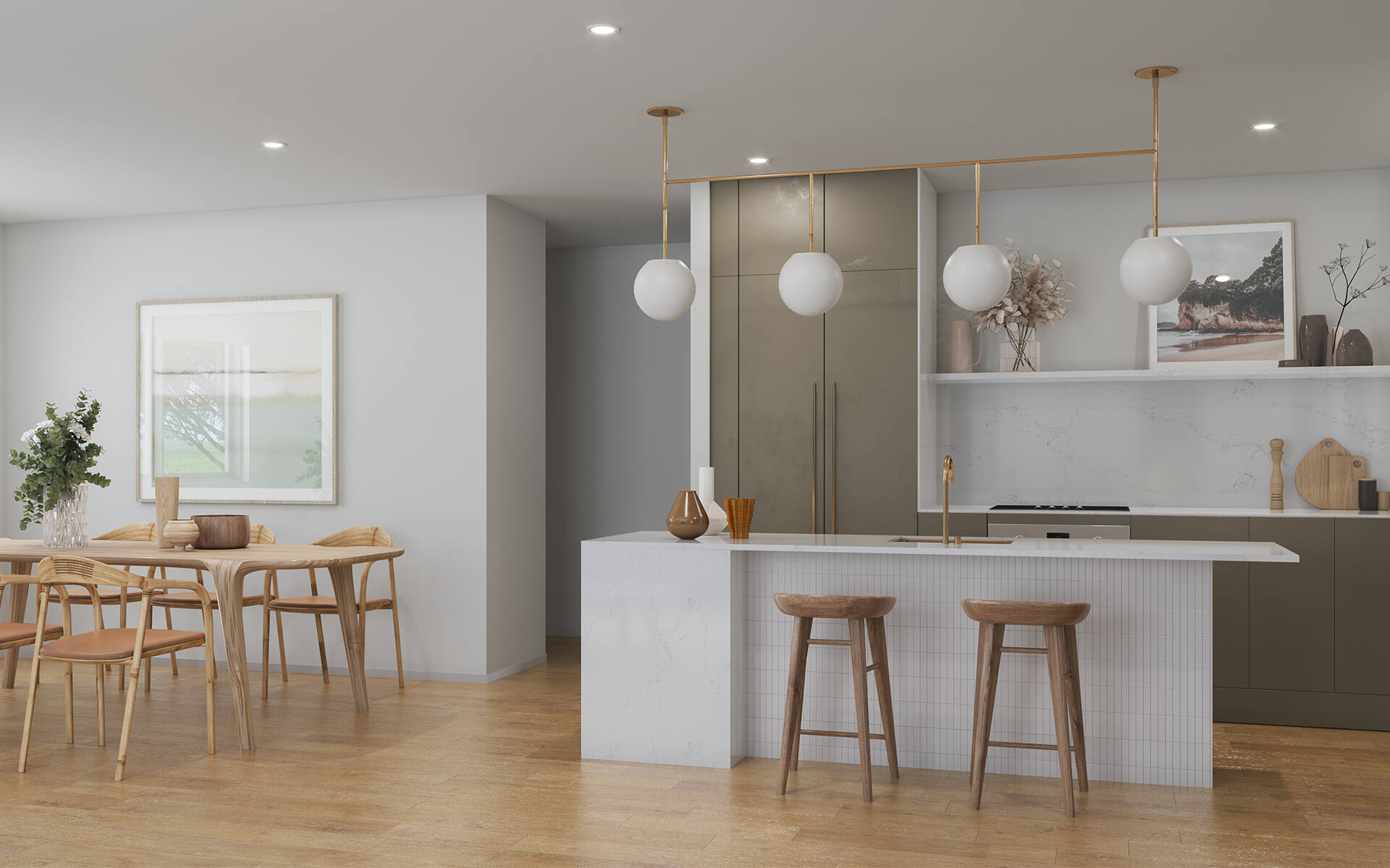- Open-plan kitchen, family and dining area with great natural sunlight
