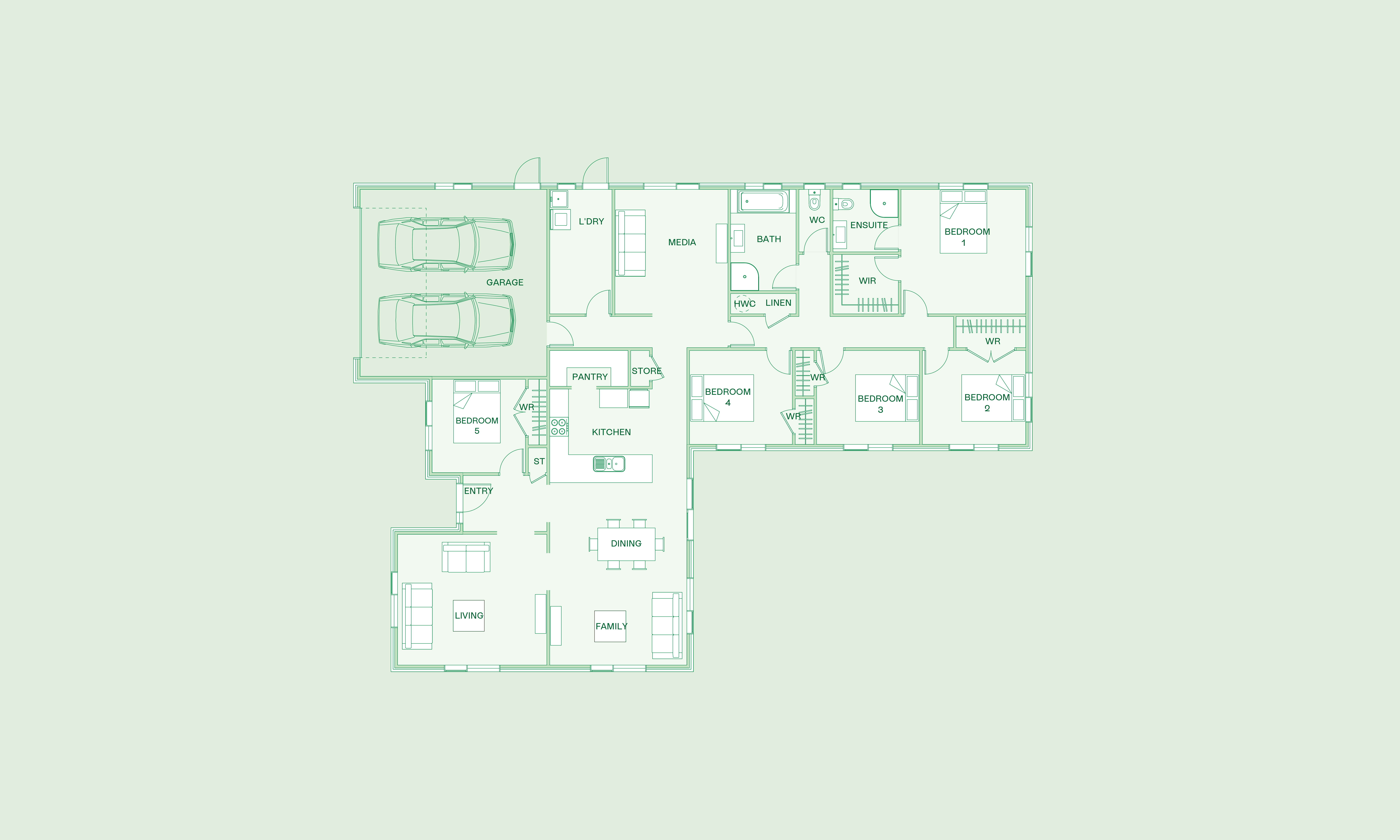 Our Harrier plan offers a large family home without the price tag. Featuring five generous bedrooms, three living spaces and a separate laundry, there's plenty of space for all to enjoy.