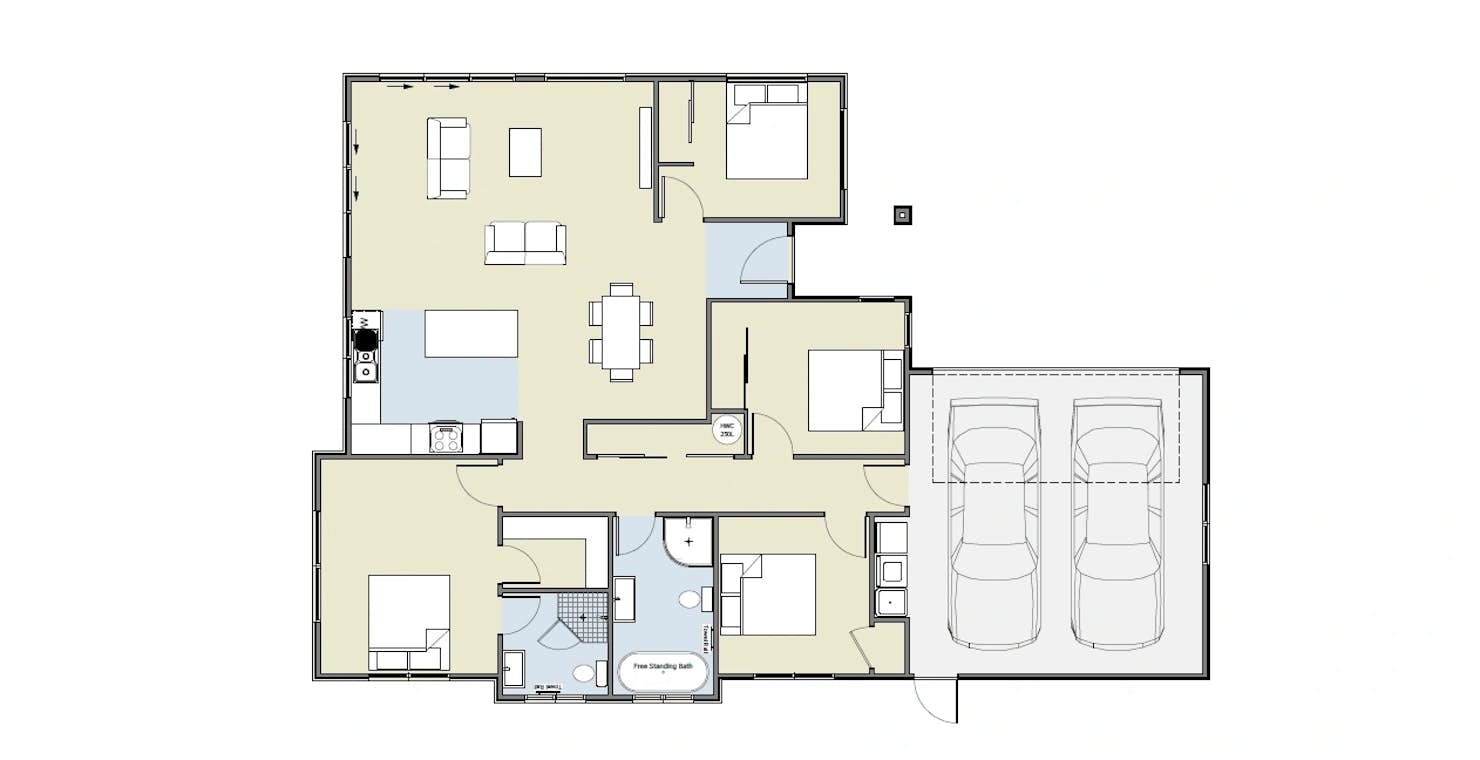Be assured of comfortable living with the Wai build. The design showcases an effective use of space, with four thoughtfully positioned double bedrooms, an open-plan living area and a double garage for storage.