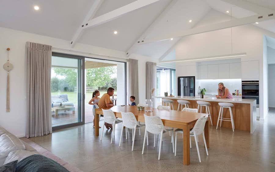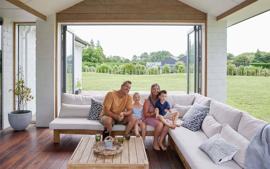 What's not to love about this incredibly well-considered home in Waikato? Wessel and Megan wanted a home for all seasons, with lots of sheltered outdoor spaces and sun-drenched bedrooms and living spaces all year round. The expansive decking area comes complete with bifold doors to fight off the prevailing winds creating a cosy outdoor space in the winter months. While the bedrooms are generous in size for their children to grow into.