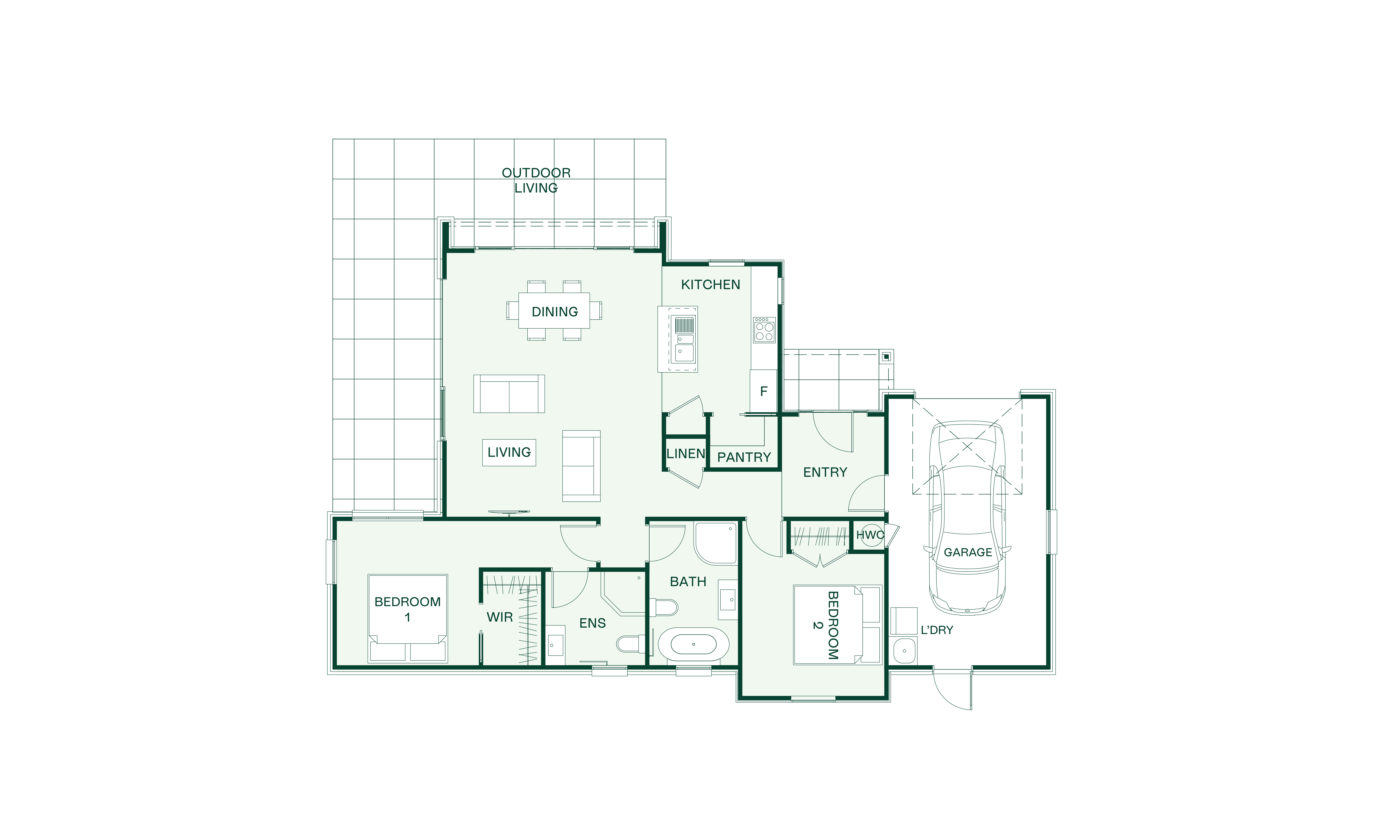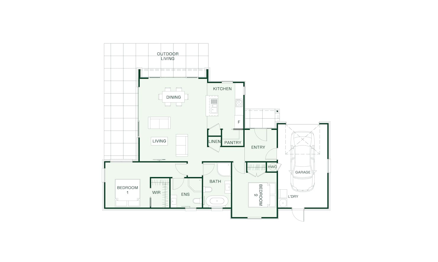 A compact home with big house features. The Dunstan's wide frontage gives it great street presence, while the modern kitchen creates a focal point in the open-plan living area, which is extended by the integrated outdoor area.
