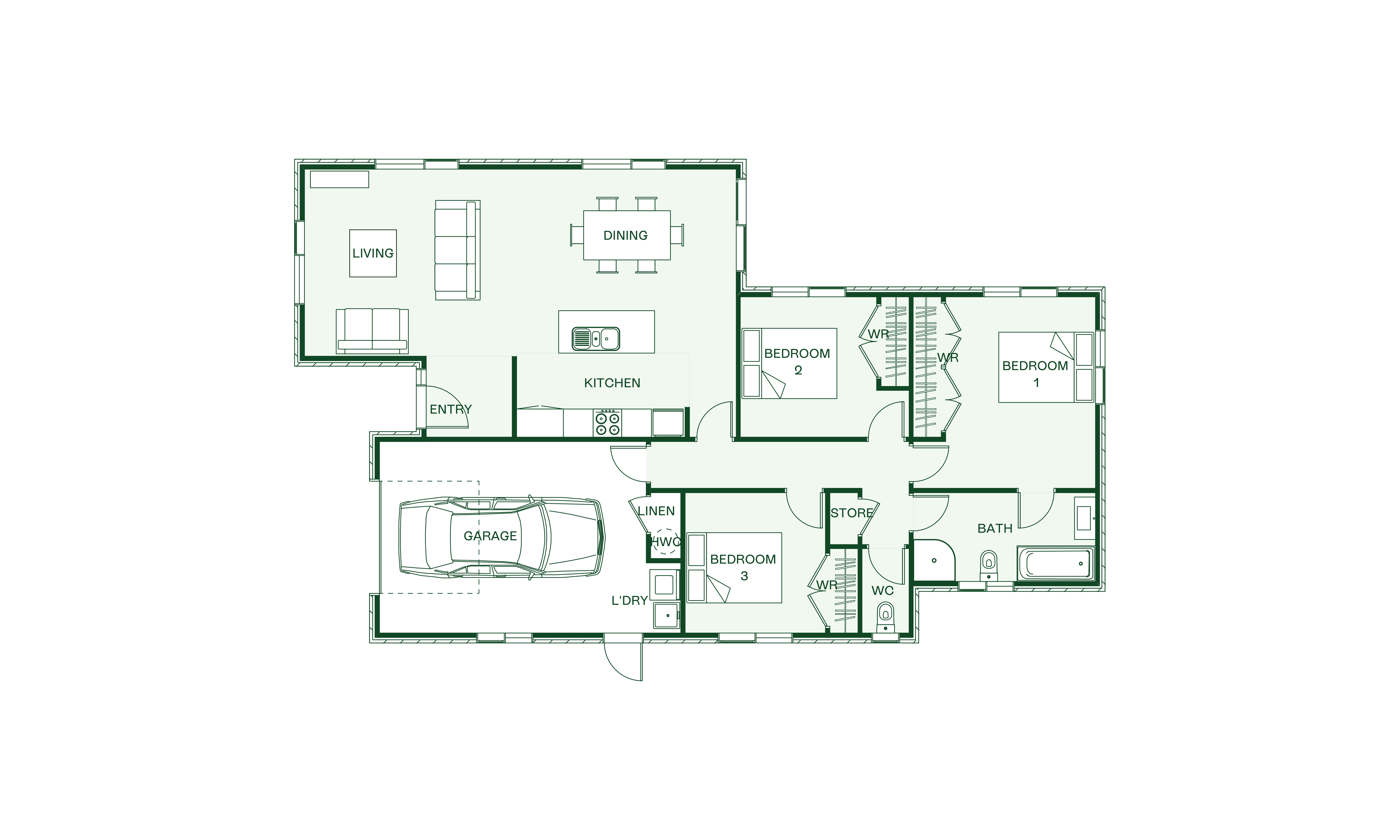 Our Godwit three-bedroom plan offers a functional layout ideal for growing families.