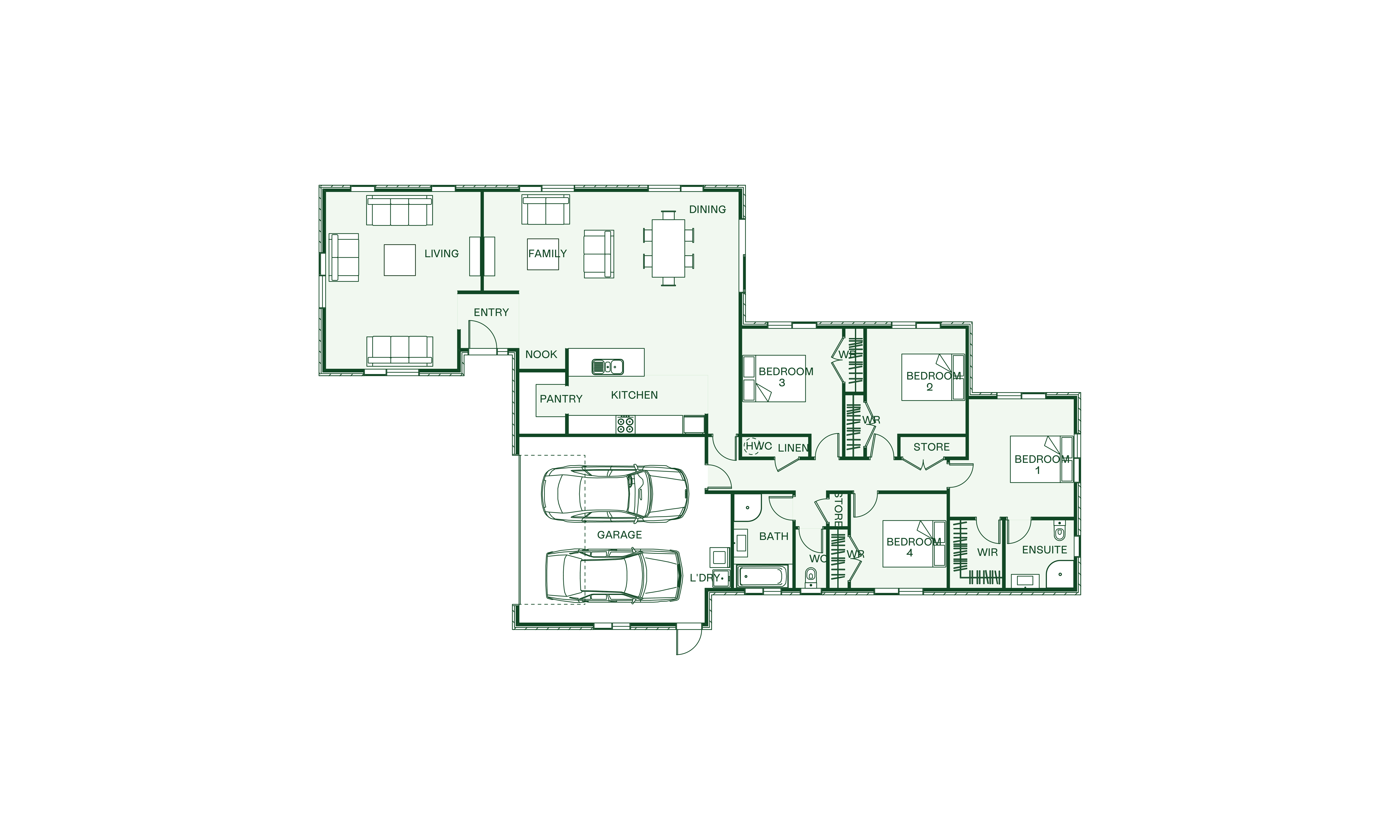 Defined by two separate spaces for living and resting, our four-bedroom Hawk plan comes with all the modern must-haves. The smart design of this home allows for multiple living zones well suited for growing families.