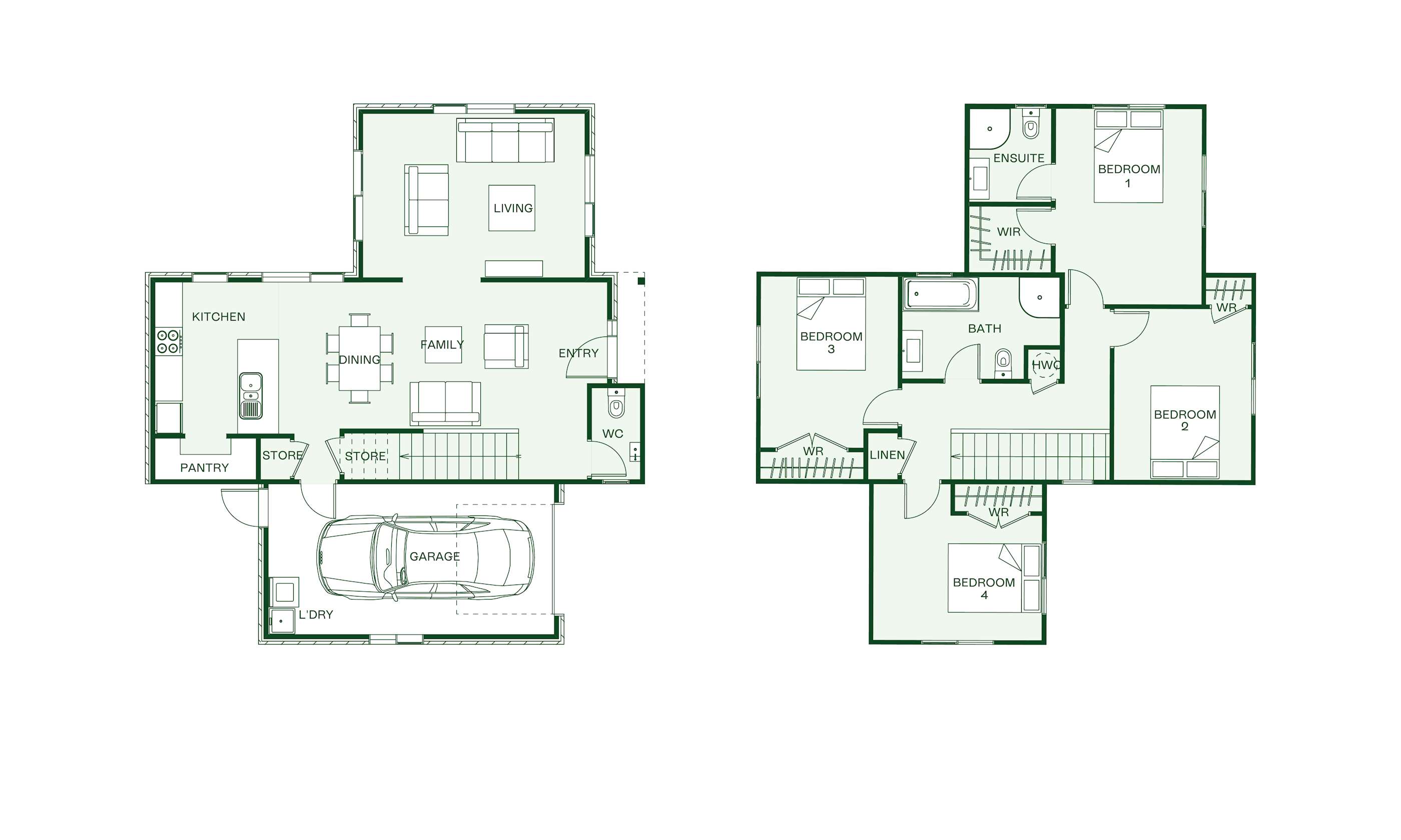 Maximise your section with the four-bedroom Kotare plan. Spread over two-levels, this home features all the modern comforts. Downstairs you'll find open plan living with the bonus of a second living space. Upstairs are four generous bedrooms with a master ensuite and a large family bathroom.