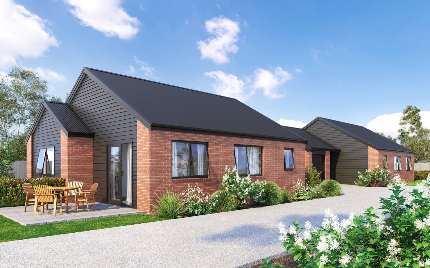 Perfect for easy family living, this cosy three bedroom, one-and-a-half-bathroom, single-storey duplex design results in two high-quality homes that are stylish and liveable, as well as cost effective and quick to build.