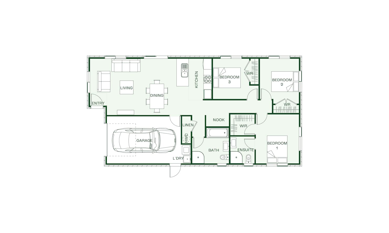 There's so much on offer with our cleverly designed three-bedroom Rifleman plan. Designed to maximise space, the plan features three well-proportioned bedrooms, with the added benefit of an ensuite in the master bedroom. You'll also find a study nook in the open plan kitchen living and dining space, making working from home a breeze. What more could you want? Enquire today.