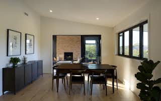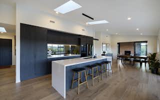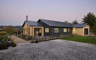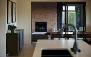 Warm brick and bold dark cladding create a striking rural character, while inside, a designer open-plan kitchen and living space flows seamlessly to a resort-style outdoor entertaining area complete with pool, pergola, and hot tub.