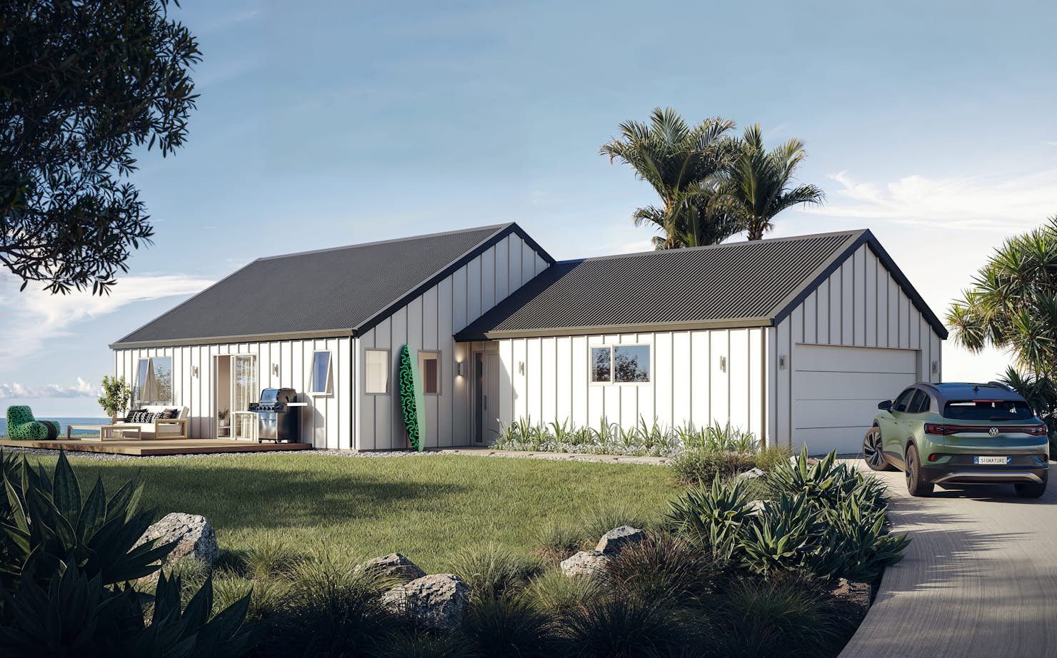 Inspired by New Zealand's stunning Northland coastline, the Tutukaka plan captures the essence of relaxed coastal living. Whether it's a bach or your forever home, its versatile layout is designed for the way Kiwis really live - easy family days, working from home, and long summer evenings spent outdoors.