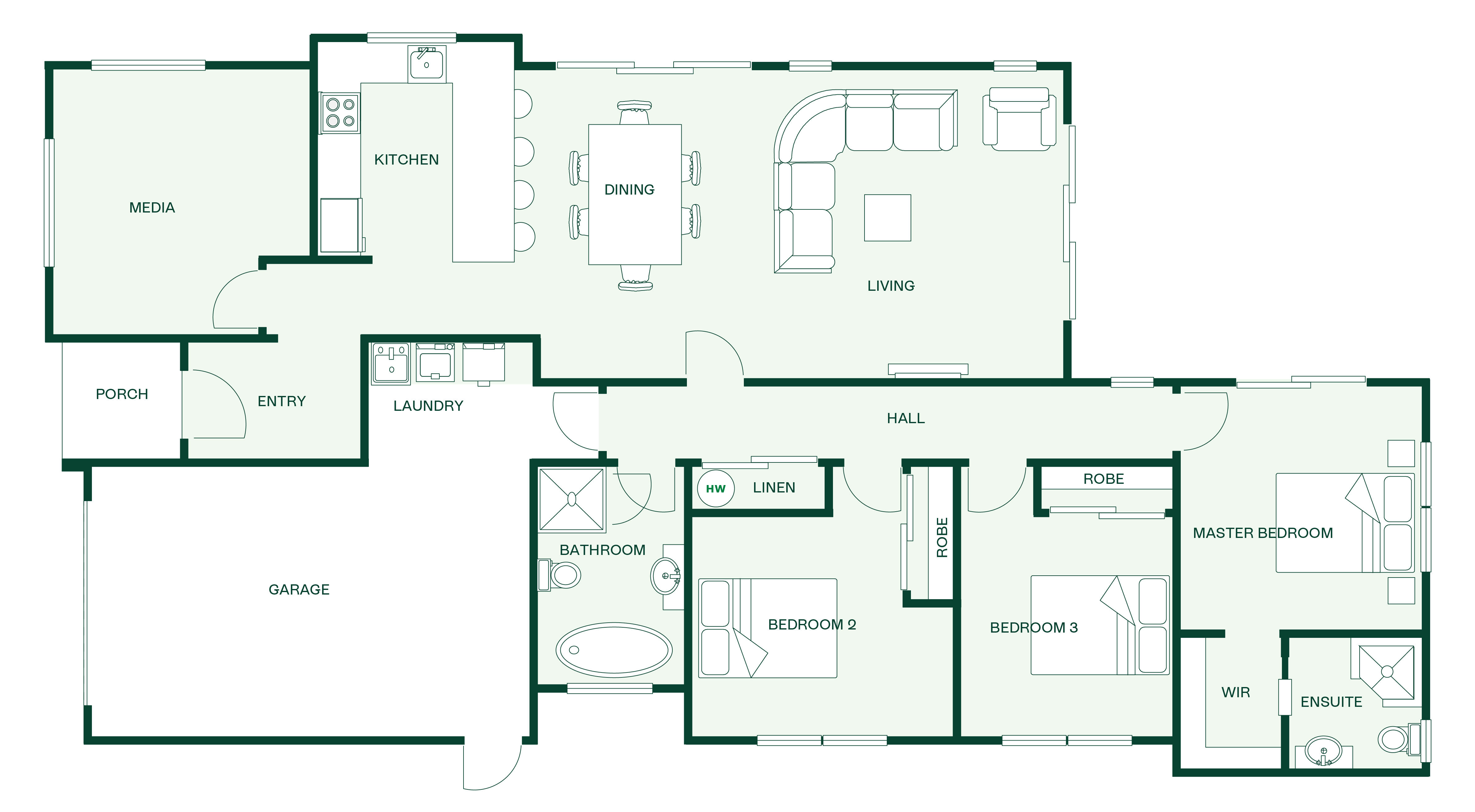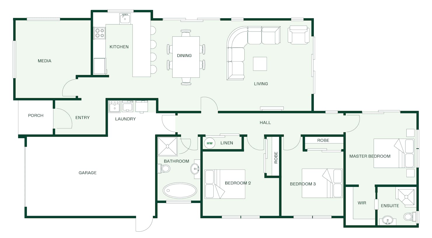 The Wānaka plan offers a well-thought-out design that adapts to the needs of modern families, combining elegance, functionality, and comfort into a single-level home.