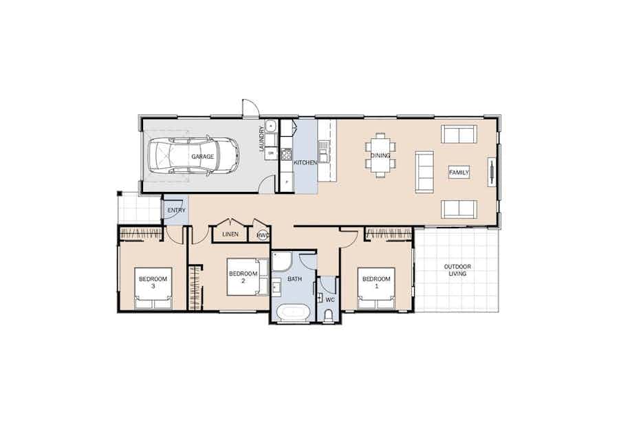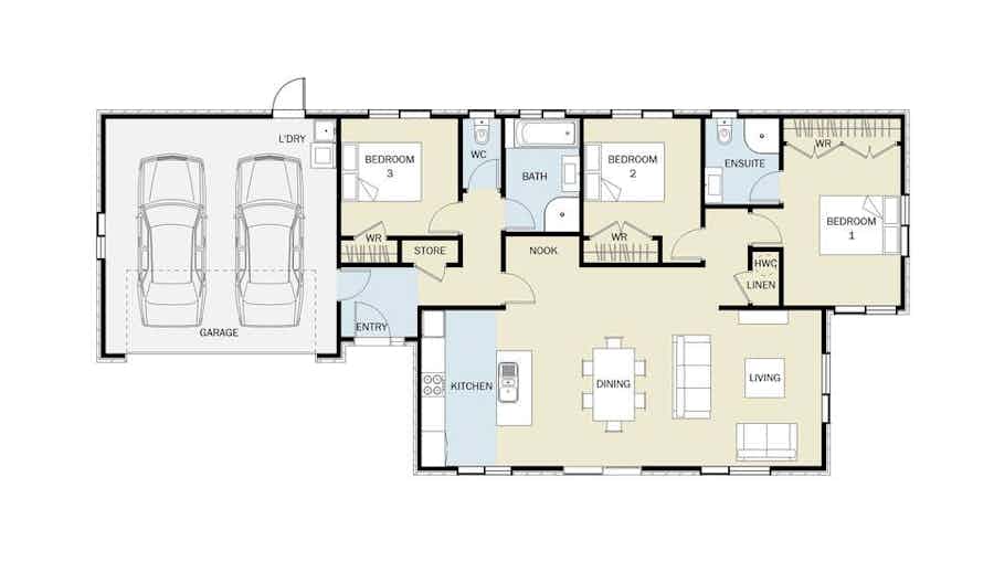 A three-bedroom home a cost-effective design without compromising on quality. Featuring three generous bedrooms, including a master with ensuite, there's plenty of room for all to enjoy.