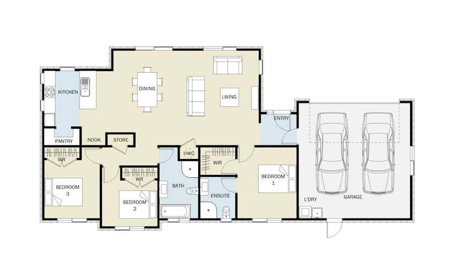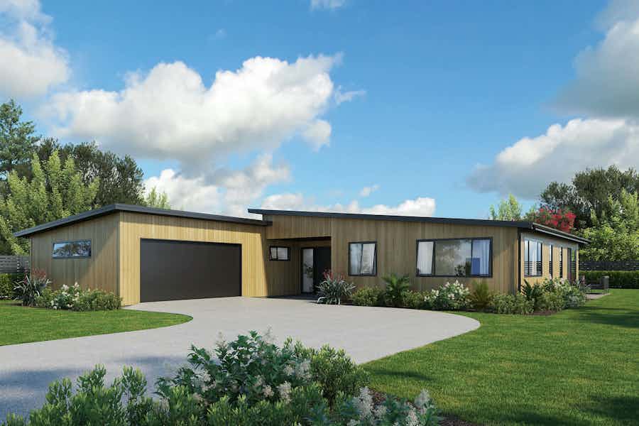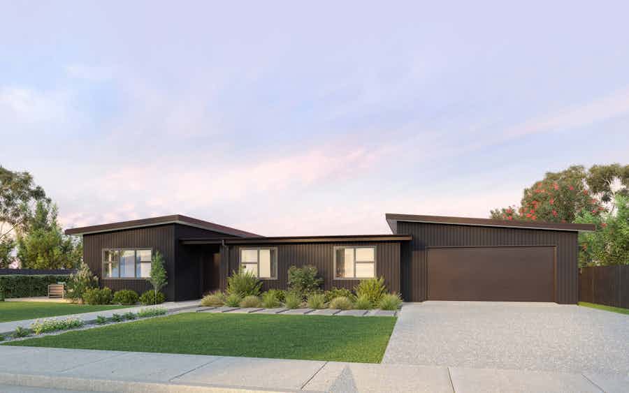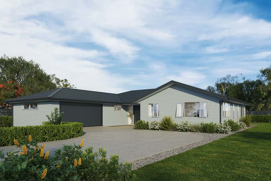 The Kiwi plan makes for an ideal family home with three generous bedrooms, open plan living and double car garaging. Daylight shines through to the modern kitchen thanks to ample windows.