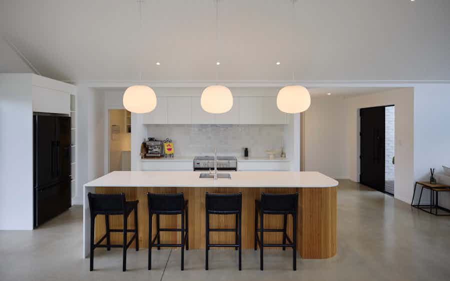 A modern three bedroom custom build, featuring a striking exterior and an inviting interior.