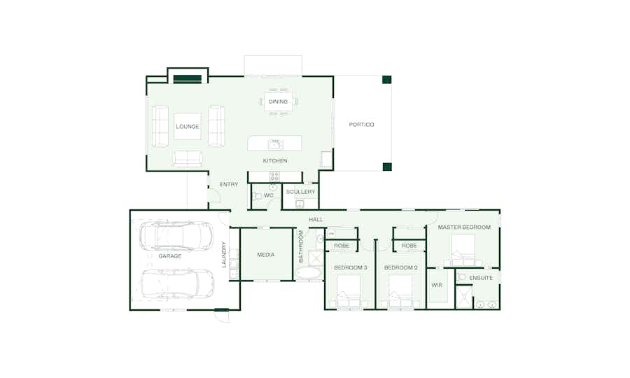 Our Fernbird plan offers an ideal family home or investment build. You will find a bedroom ideal for guests or teenagers at the entrance, with the remaining three bedrooms tucked away at the back of the home.