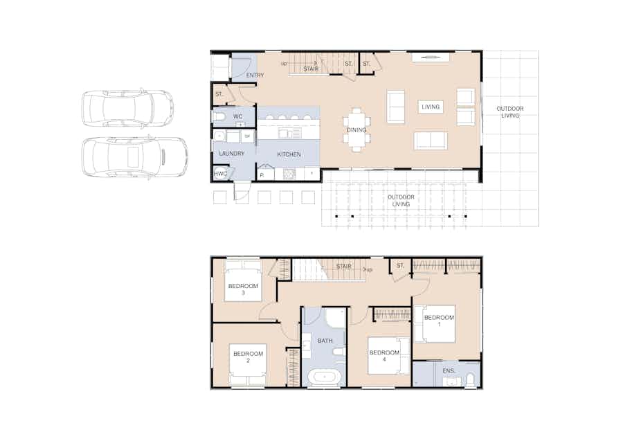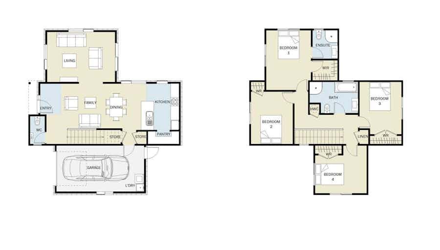 Maximise your section with the four-bedroom Kotare plan. Spread over two-levels, this home features all the modern comforts. Downstairs you'll find open plan living with the bonus of a second living space. Upstairs are four generous bedrooms with a master ensuite and a large family bathroom.