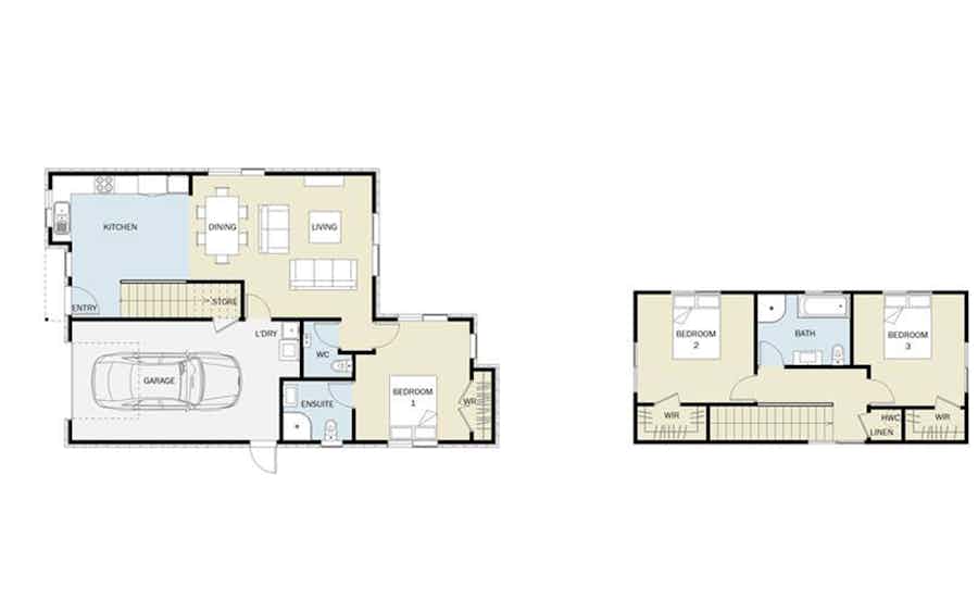 Maximise your land without compromising on the must-haves in a quality home. This compact 155m2 features an open plan living on the ground floor, which flows outdoors. The L-shaped kitchen creates more space, helping achieve the easy-open plan flow.