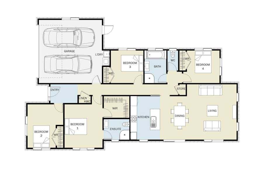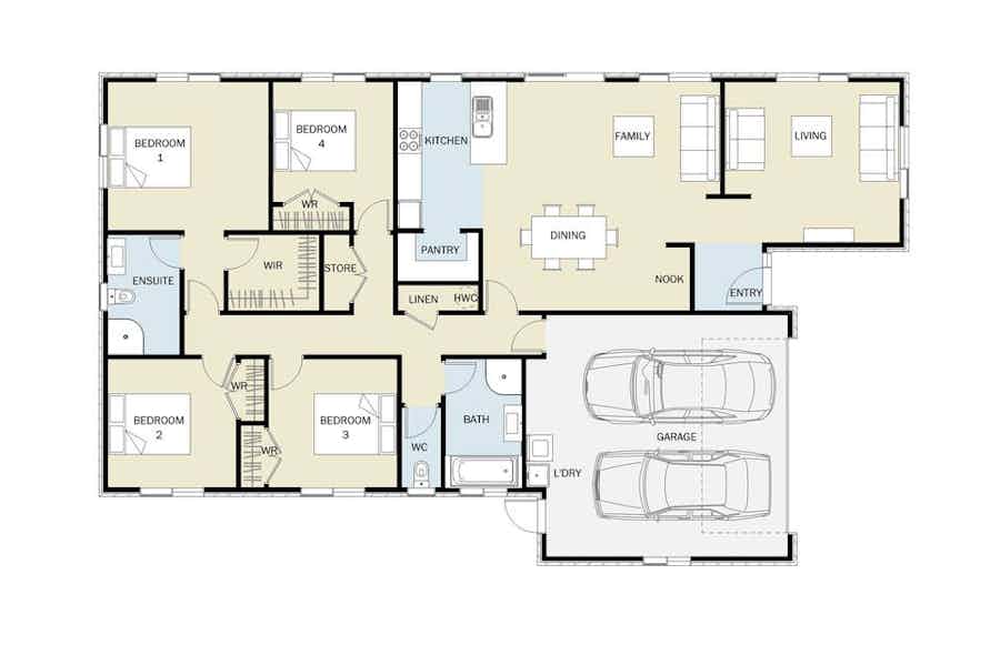 A standout feature of our four-bedroom Heron plan is the master bedroom which comes complete with a walk-in wardrobe, ensuite and ample bedroom space.