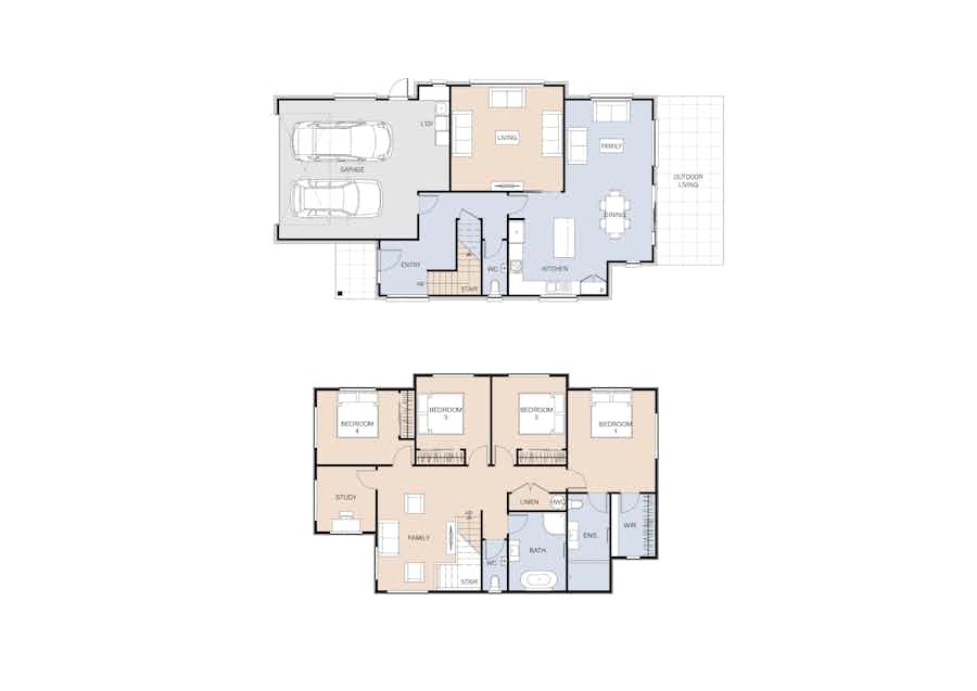 Split over two stories the Tern has four double bedrooms including a master suite which is tucked away on the ground floor. Expansive open-plan living and dining dominates the remainder of the ground floor along with the designer kitchen.