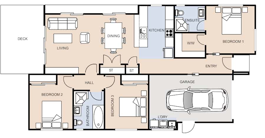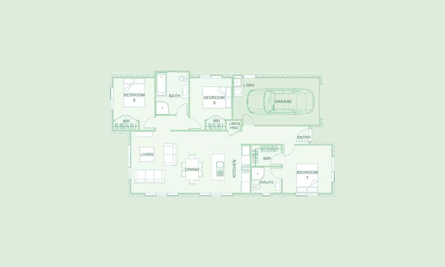 A three-bedroom home a cost-effective design without compromising on quality. Featuring three generous bedrooms, including a master with ensuite, there's plenty of room for all to enjoy.