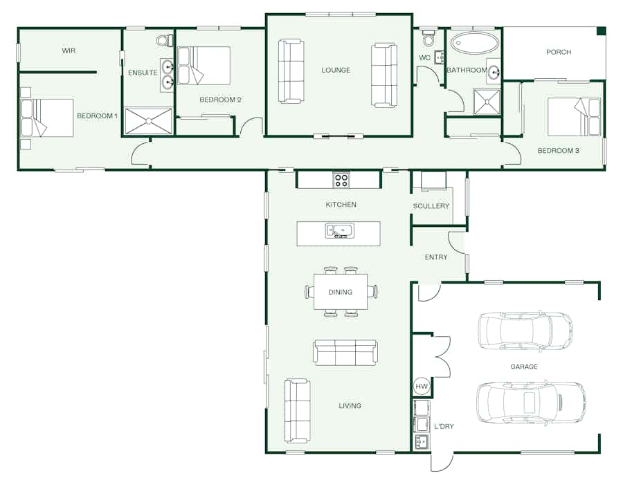 Livable and relaxed, the Traveller meets all of life's events with ease. It's flexible design and effective use of space helps organise your home to best suit your lifestyle. The bedroom zone consisting of three bedrooms including a master, is separated from the main living space creating a natural flow of movement.