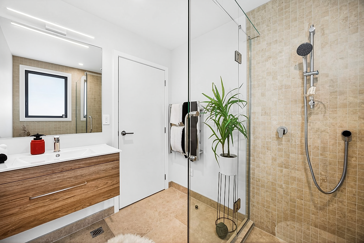 Upstairs, the bedrooms are thoughtfully positioned away from the main living areas, creating a quiet retreat at the end of the day. A dedicated standalone laundry enhances practicality, and beautifully tiled showers introduce a refined finish you’ll appreciate daily.