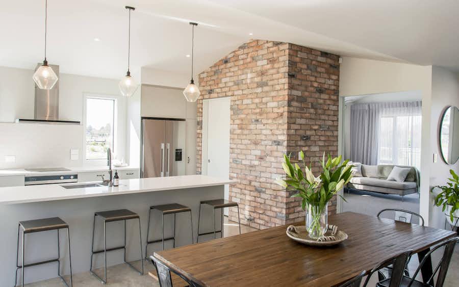 Inside, BJ and Jess wanted to carry the homely feel of the brick through to the kitchen and living area to create a rustic vibe.