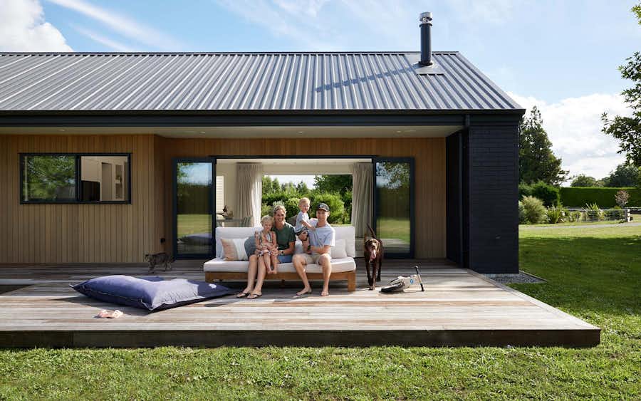 Clarissa, Darren and their two children, Maaike (3) and Flynn (1), along with Ralph (dog) and Russell the (cat), set their hearts on a semi-rural site with stunning established trees Matangi, Waikato – building a home that truly feels at one with nature.