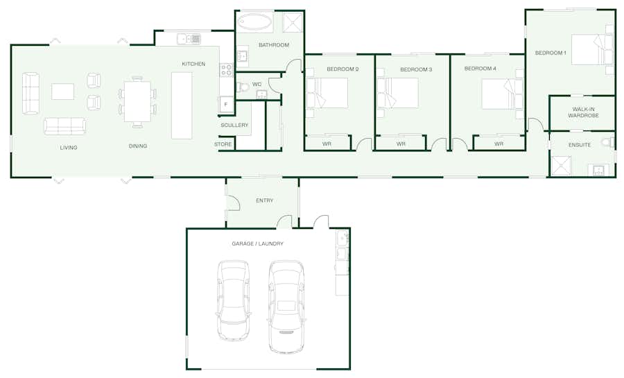 If you're looking for a home that offers an indoor-outdoor flow, our Maxwell design is for you. The Pavilion style design is about easy flow and highly liveable spaces with four bedrooms and open living spaces for families to connect.