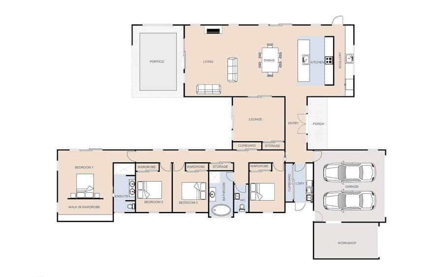 This plan is appropriately named ‘The Robinson’ and features four well-appointed bedrooms. Open-plan spaces invite families to connect, with a cosy family lounge for relaxation.