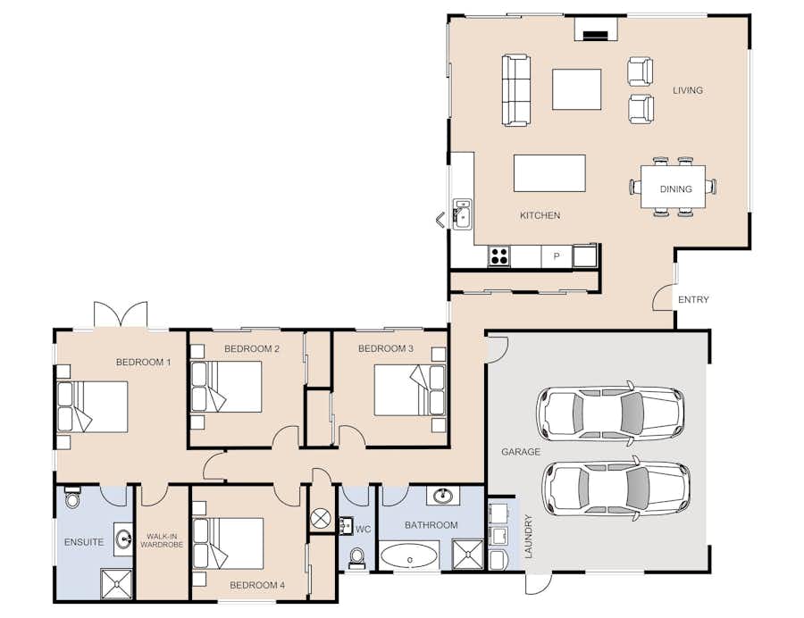 Molly and Brett used the basis of our Toto pre-designed plan from our Pacific Collection, modifying it to suit their section and growing family. The living area faces directly out to the water, as do three out of the four bedrooms. The living room features large doors and windows to capture the stunning views all year round.