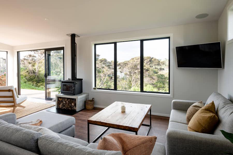 There is something special about Raglan winters, and Molly and Brett wanted to create a cosy space for all to enjoy throughout the cooler months. Their wood burner fireplace does just this.