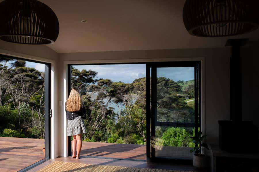 As their section sits right on the reserve of the Raglan Harbour, capturing the wild and ever-changing landscape was a must. Large windows and multiple areas connecting to the outdoors were high on Molly and Brett's list, as were interior elements such as wood and stainless steel features to create a cosy coastal feel.